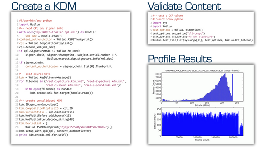 CineCert’s Wailua Digital Cinema Mastering System is a package of software tools that allow the user to manipulate and test digital cinema files as part of a d-cinema packaging or distribution workflow. With the Wailua toolset you can easily create a D-Cinema Package (DCP) from source files by issuing individual commands or by scripting in your favorite shell, Python or C++ environment.